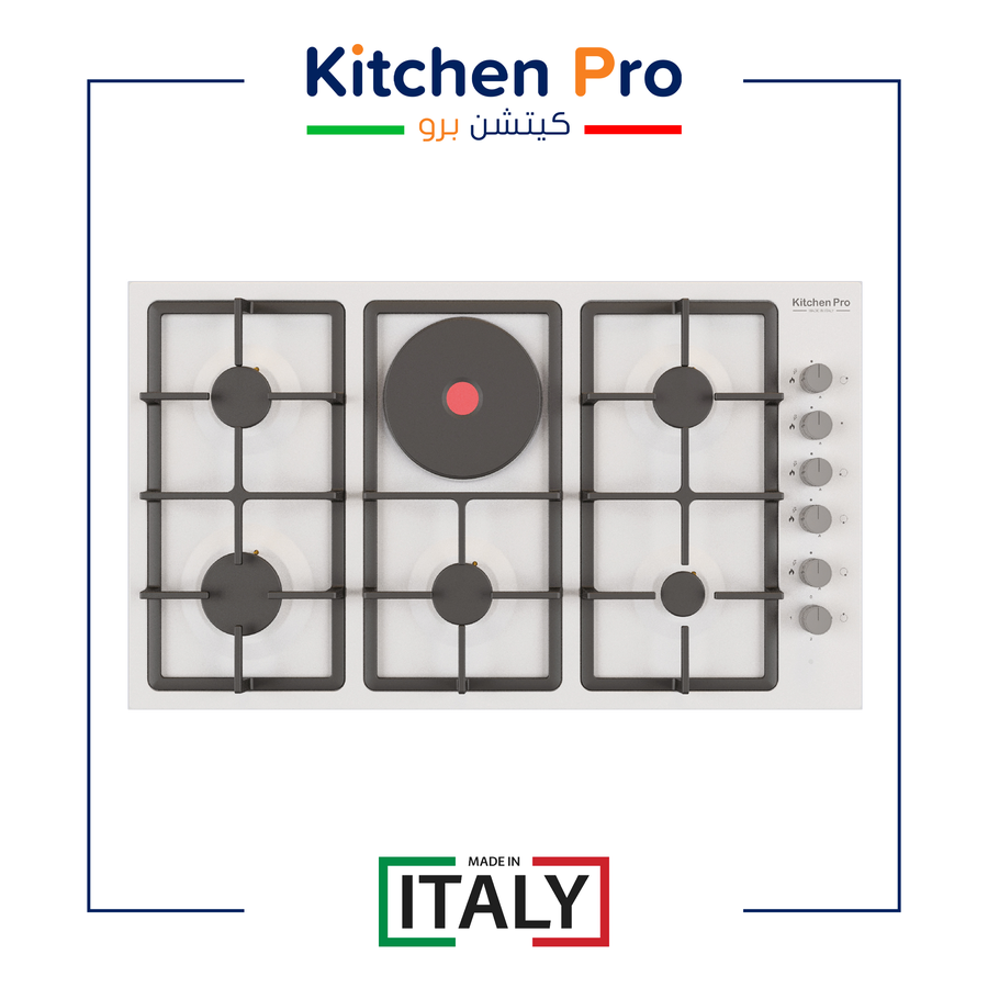 سطح 6 عين استيل(5غاز+1كهرباء حجر) شبك هيقي ديوتي - - مفاتيح جانبيه - ايطالي– ماركة كتشن برو KP9023/GA