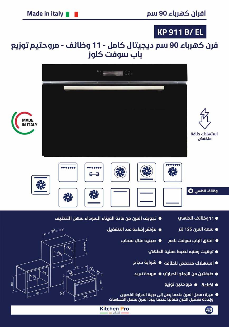 الاحترافية في مطبخك فرن كيتشن برو 90سم اسود 11وظائف، مروحتين توزيع، سعة 125L، تحكم ديجيتال. سوفت كلوز، لوكس، وتصميم ستيل فاخر. ايطالي