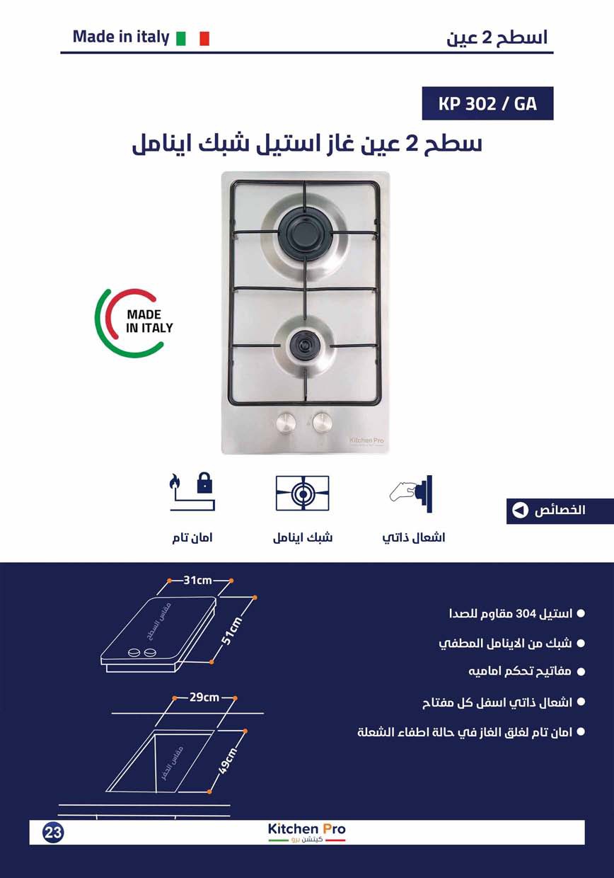 سطح بلت إن كتشن برو (صناعة ايطالي) ستيل 304 مقاوم للصدأ، اينامل، مفاتيح امامية، ، إشعال ذاتي، أمان تام (SASO معتمد 100%). ضمان 3 سنوات