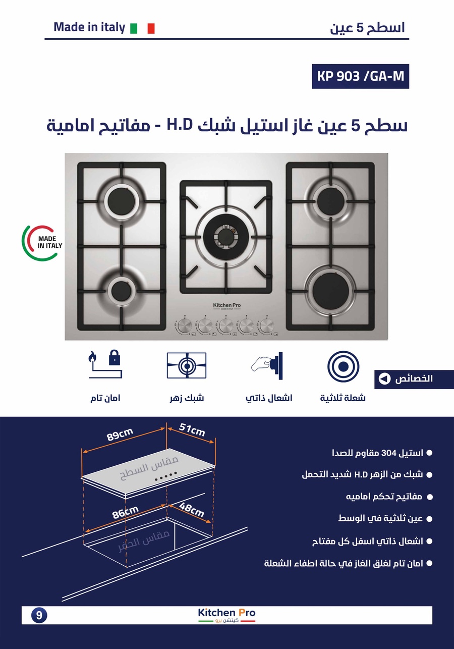 سطح بلت إن كتشن برو (صناعة ايطالي) ستيل 304 مقاوم للصدأ، شبك زهر HD، مفاتيح امامية، عين ثلاثية في الوسط إشعال ذاتي، أمان تام (SASO معتمد 100%). ضمان 3 سنوات.