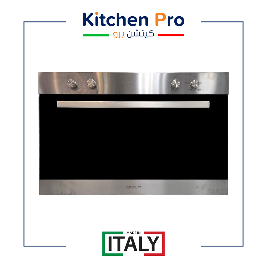 فرن غاز كتشن برو 90 سم. صناعة إيطالية، مروحة توزيع، شواية دجاج، ونظام أمان متطور. سهل التنظيف وعملي. تسوق الآن وجدد مطبخك! يعمل فوق وتحت معا