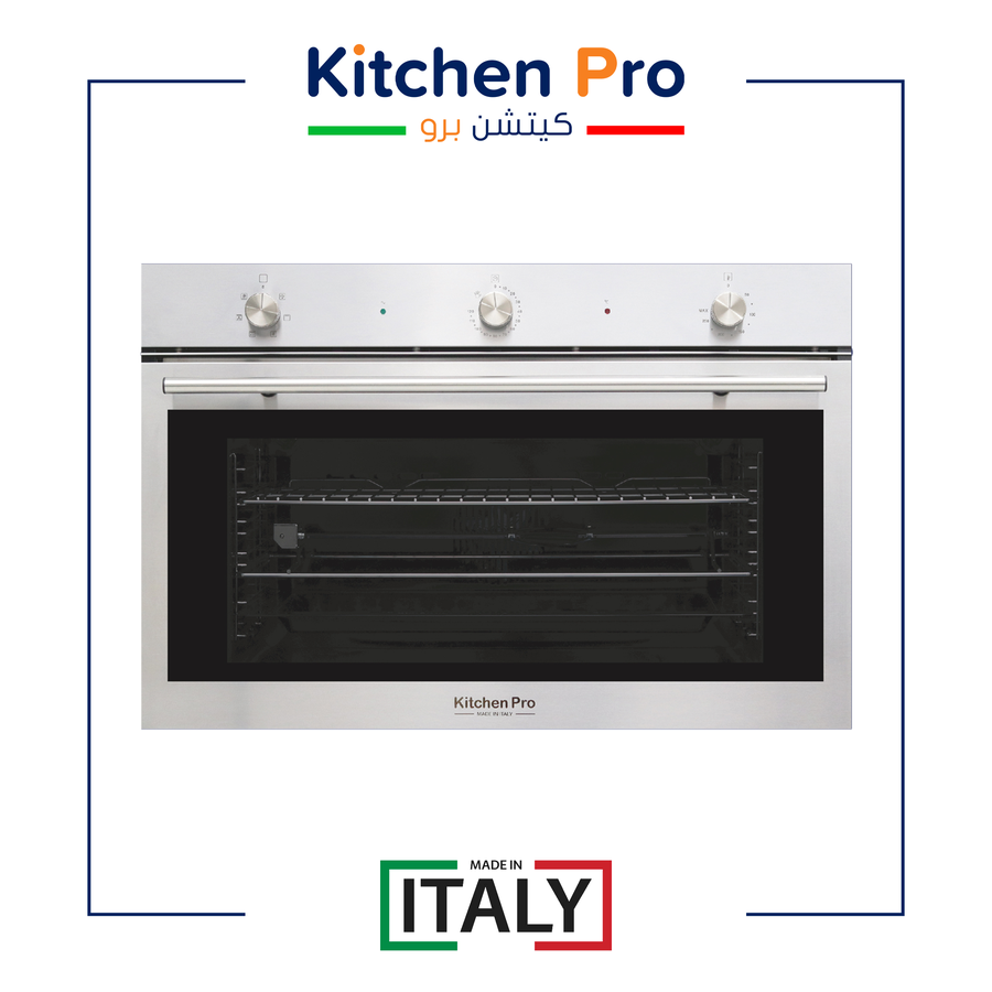 فرن كهرباء بلت إن 90 سم إيطالي كتشن برو سعة 125 لتر، 6 وظائف، ستيل، زجاج حراري، مروحة توزيع وتبريد، تنظيف سهل (مينا سوداء)، وأمان عالي (حساسات وفصل تلقائي
