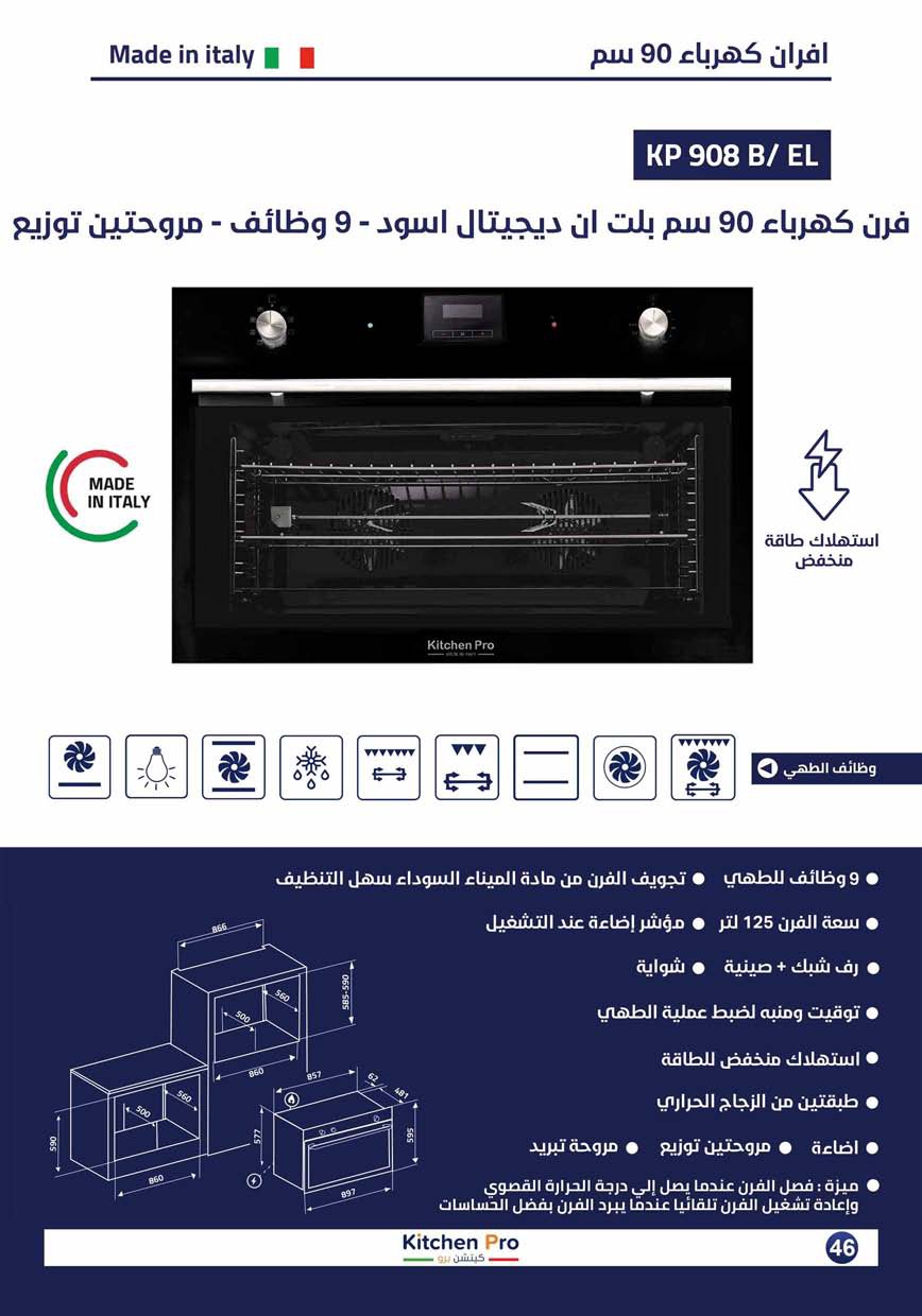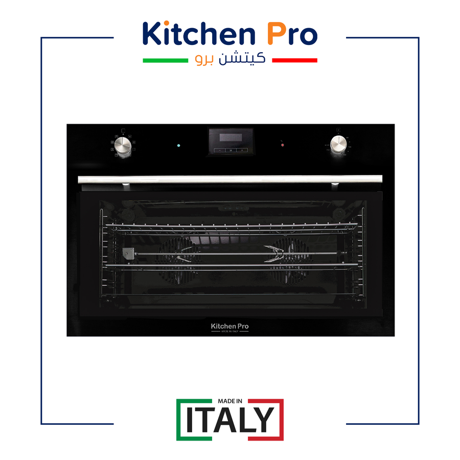 الاحترافية في مطبخك فرن كيتشن برو 90سم اسود 9 وظائف، مروحتين توزيع، سعة 125L، تحكم ديجيتال. أداء جبار، أمان ذكي، وتصميم ستيل فاخر. ايطالي