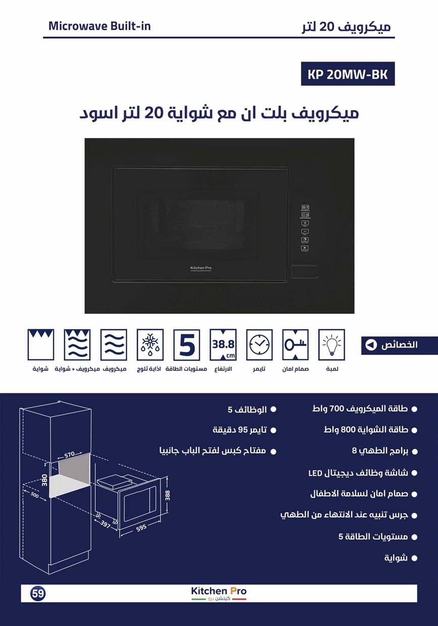 ✨ ميكرويف كتشن برو بلت إن (20لتر) مع شواية - دمج الأناقة والقوة