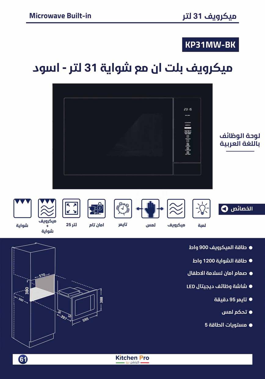 🌟 ميكرويف كتشن برو بلت إن (31 لتر) مع شواية - الرفاهية في مطبخك
