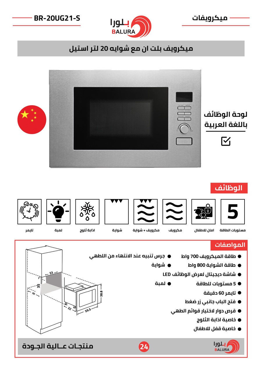 مايكرويف بلت ان 20 لتر بشواية 700/800 واط. 5 مستويات طاقة، شاشة LED ديجتال، تايمر 60 دقيقة، قفل أطفال، وإذابة ثلوج.