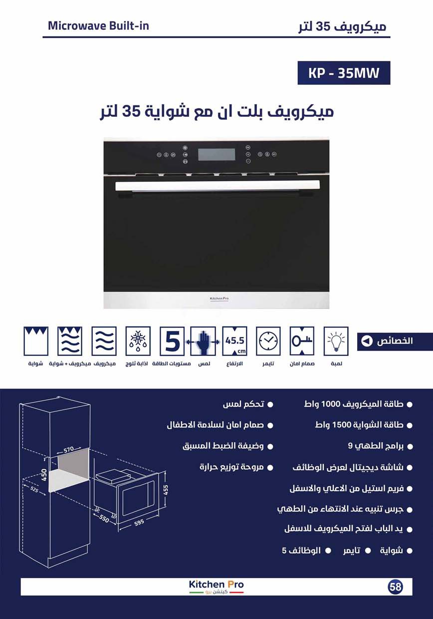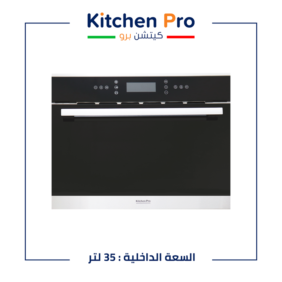 ميكروويف كتشن برو (35 لتر) بلت إن: قوة 1000W/1500W شواية، 9 برامج، 5 وظائف، تحكم لمس، شاشة ديجيتال، ستيل، مروحة، وأمان أطفال. فخامة وأداء بمطبخك.