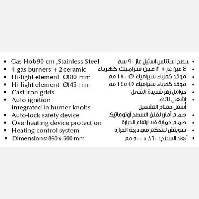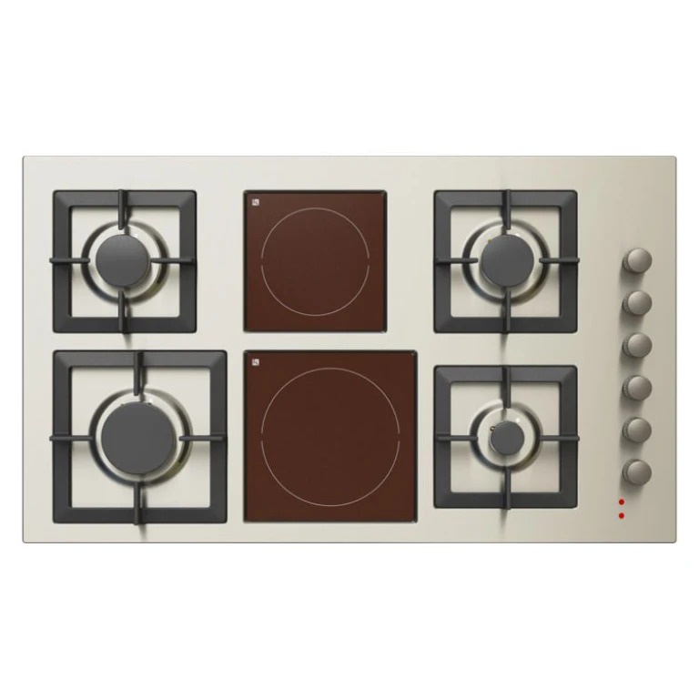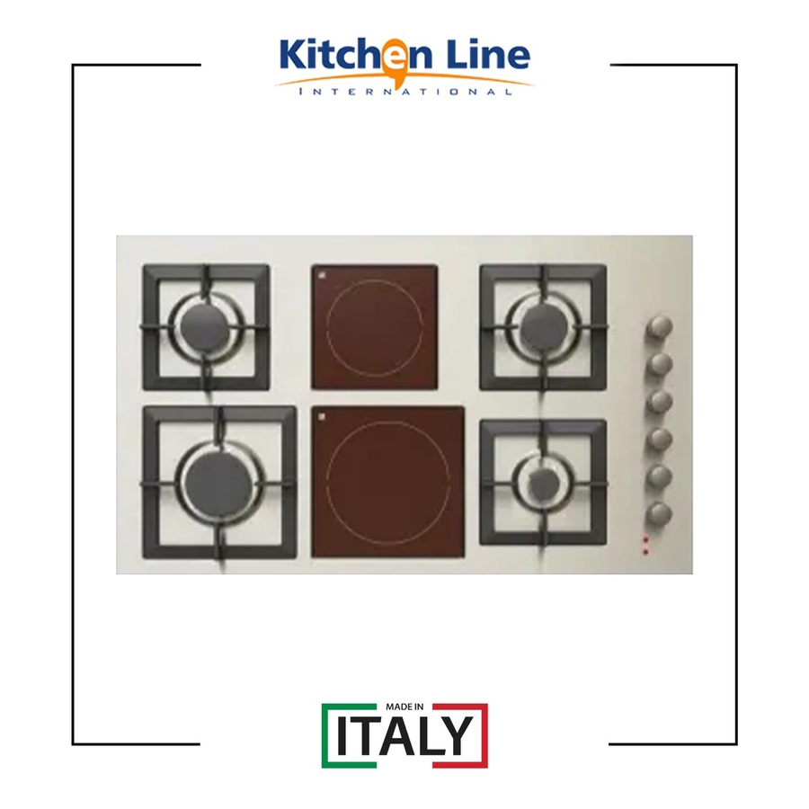 العلامه التجارية : كيتشن لاين kitchen line الصناعة : ايطالى الموديل : J5022 الوصف : سطح 6 عيون (منهم 4 عيون تعمل بالغاز + 2 عين سيراميك تعمل بالكهرباء)