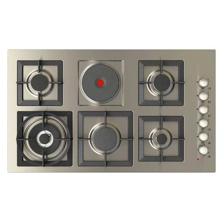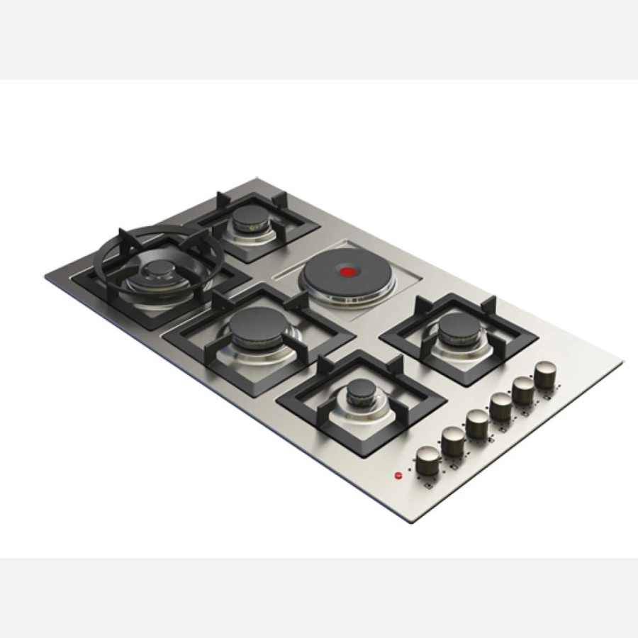 العلامه التجارية : كيتشن لاين kitchen line الصناعة : ايطالى الموديل : J5023 الوصف : سطح 6 عيون (منهم 5 عيون تعمل بالغاز + 1 عين حجر تعمل بالكهرباء)