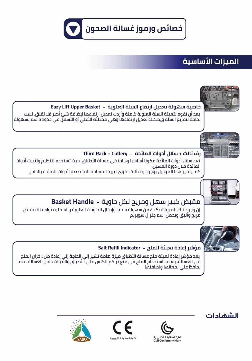 - مؤشر مستوى الملح: لتنبيهك عند الحاجة لإعادة التعبئة.