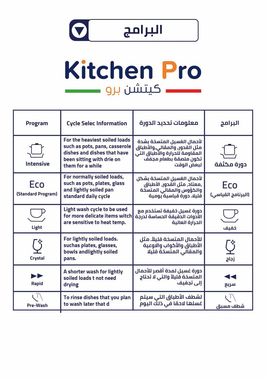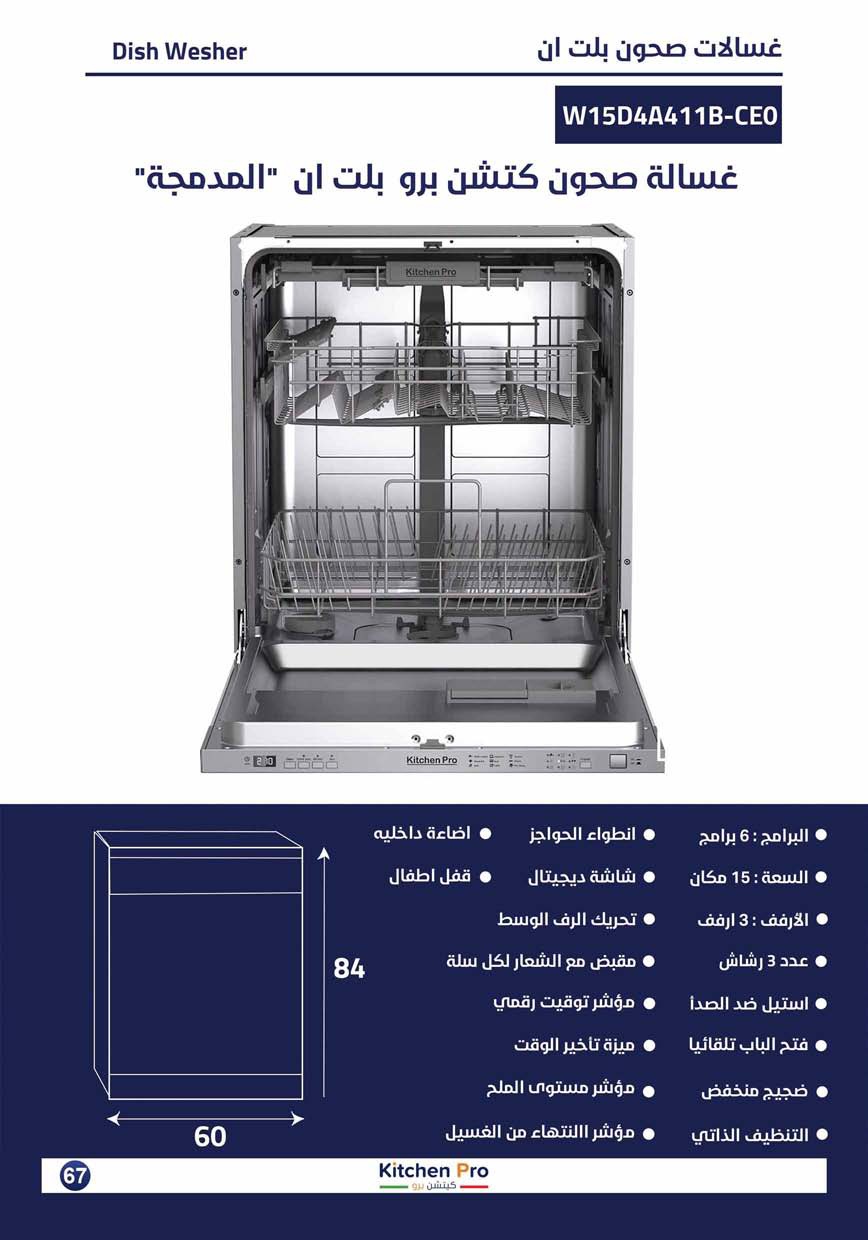 🍽️ مزايا غسالة الصحون كتشن برو (Kitchen Pro) المدمجة (Built-in)