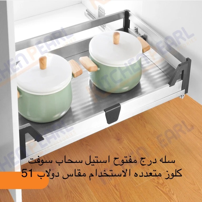 اكسسورات الدواليب السفلية. تروليات وسلال سفلية. سلة مهملات. اكسسوارات مطبخ. مستلزمات خزائن المطبخ- تروليات و سلات و سلال كتشن برو سلة ترولي