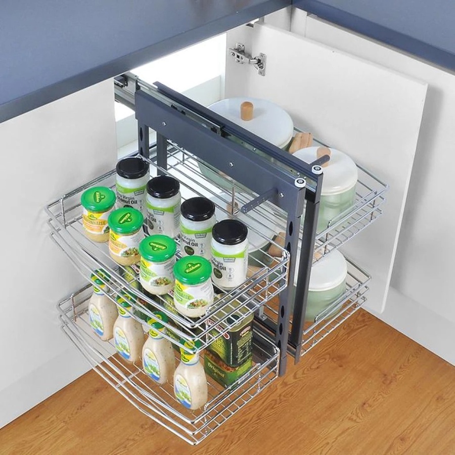 اكسسورات الدواليب السفلية. تروليات وسلال سفلية. سلة مهملات. اكسسوارات. مستلزمات خزائن المطبخ- تروليات و سلات و سلال كتشن برو سلة ترولي - منظفات- صندوق رز وسكر
