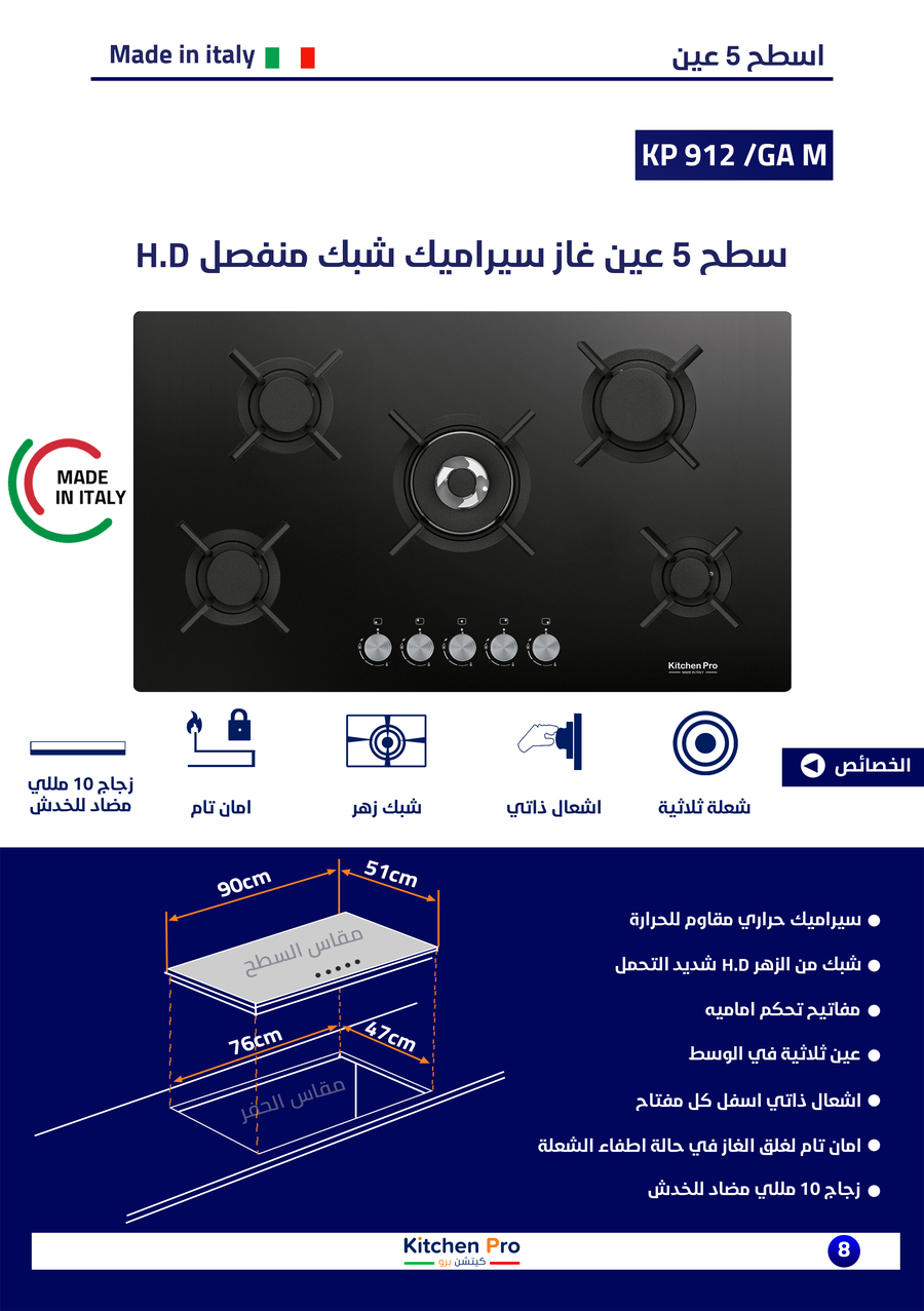 سطح بلت إن كتشن برو (صناعة ايطالي) ستيل 304 مقاوم للصدأ، شبك زهر HD، مفاتيح امامية، عين ثلاثية في الوسط إشعال ذاتي، أمان تام (SASO معتمد 100%). ضمان 3 سنوات.