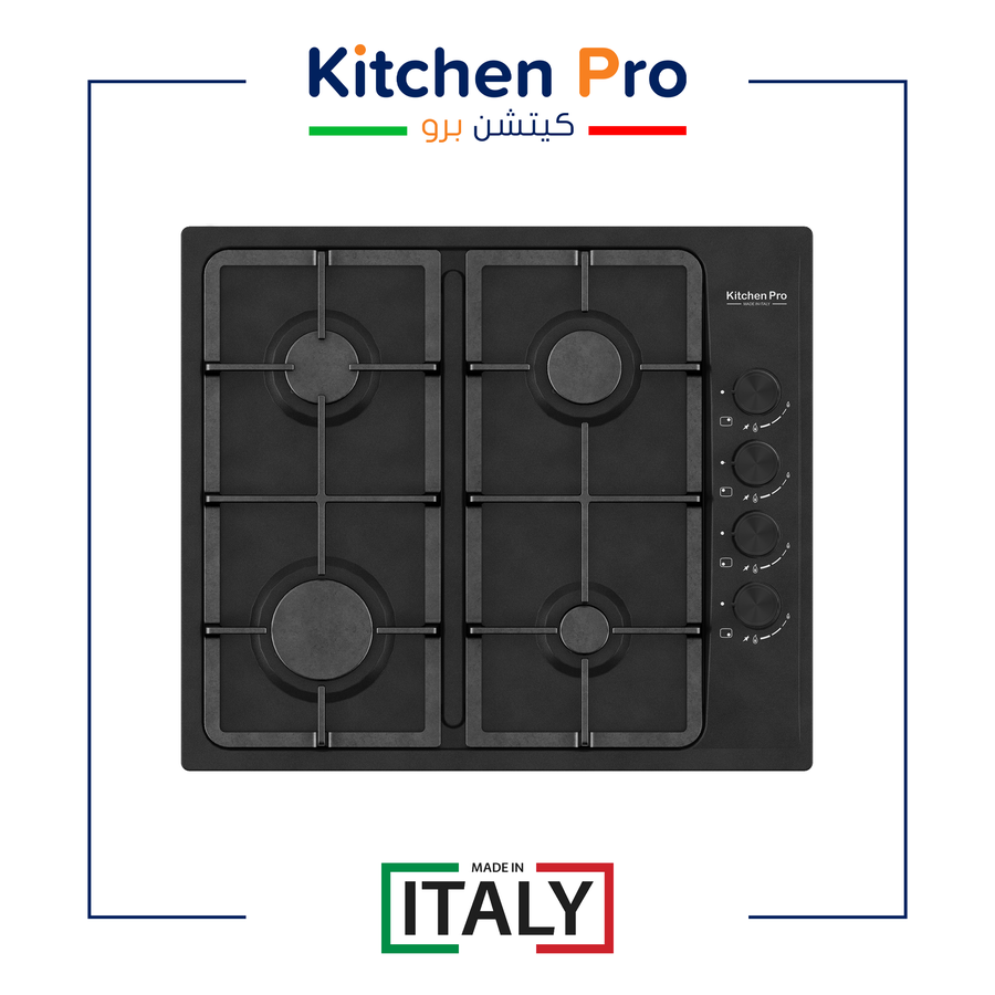 سطح بلت إن كنشن برو (صناعة ايطالي) 4عيون/شعلة ستيل 304 - لون اسود مقاوم للصدأ، شبك زهر HD، مفاتيح جانبيه، ، إشعال ذاتي، أمان تام (SASO معتمد 100%)